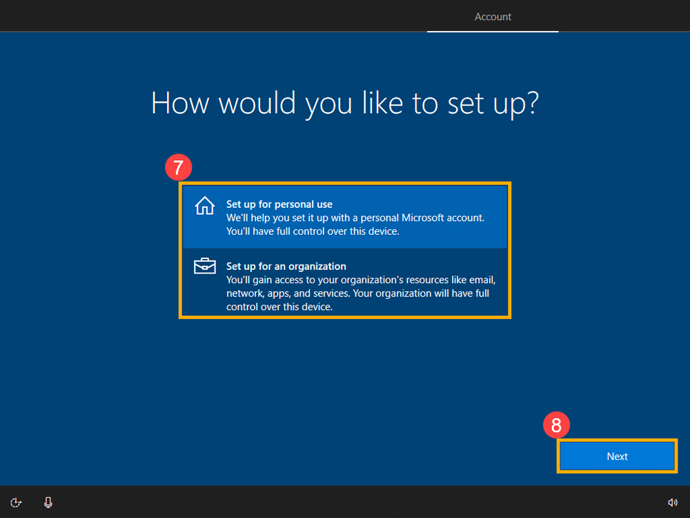 Chọn thiết lập cho Personal Use (dành cho cá nhân) và nhấn Next.