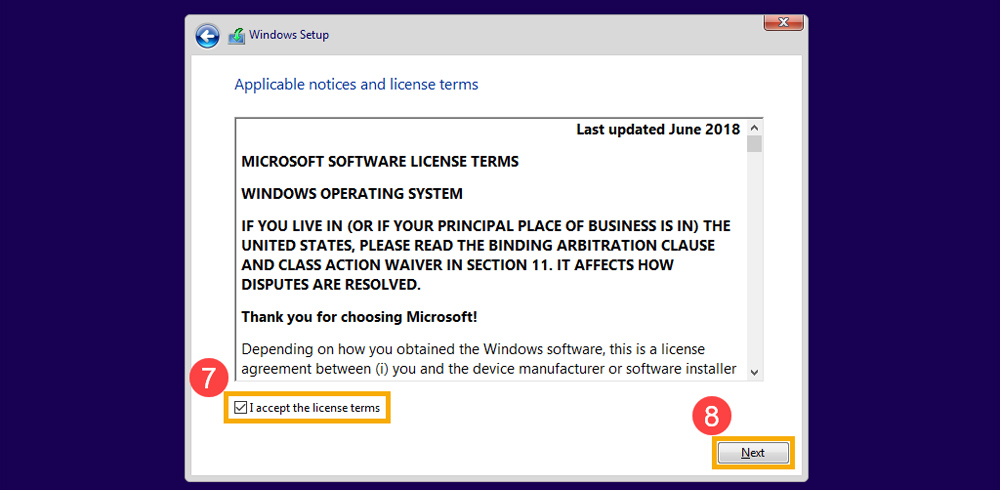 Đồng ý với các điều khoản của Microsoft, chọn Accept.